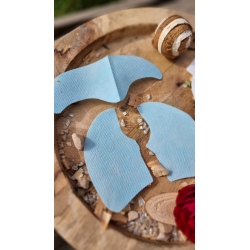 Anwendung: Haut befeuchten ( Serum auftragen). Die weiße Folie abziehen, diese Seite auf die Haut auflegen, mit Rosenwasser die blaue Folie befeuchten und blaue Folie wieder abziehen. Nach 15 Minuten Einwirkzeit löst sich die Maske auf und danach mit gewünschter Pflegecreme eincremen.