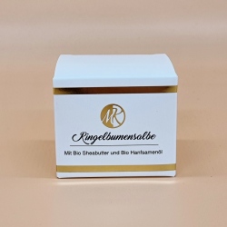 Verwendungszweck: MK-Naturkosmetik Ringelblumensalbe mit Bio Sheabutter, Bio Hanfsamenöl und Bio Kokosöl kann zur täglichen Hautpflege, Körperpflege, für die zarte Babyhaut, bei Sonnenbrand, als Kälteschutz im Winter und bei irritierter Haut verwendet werden. Wirkt schützend und beruhigt die Hautbarriere.